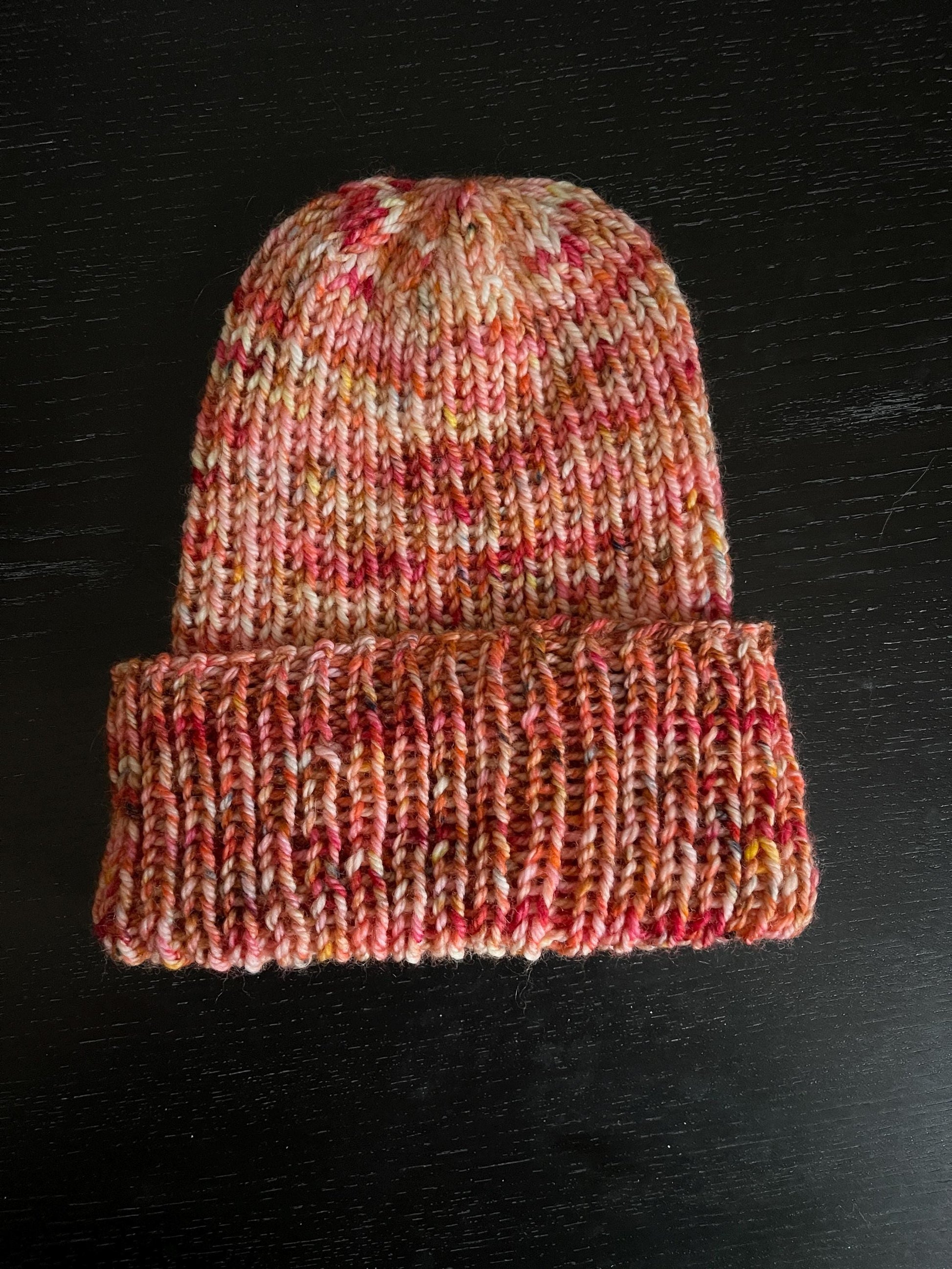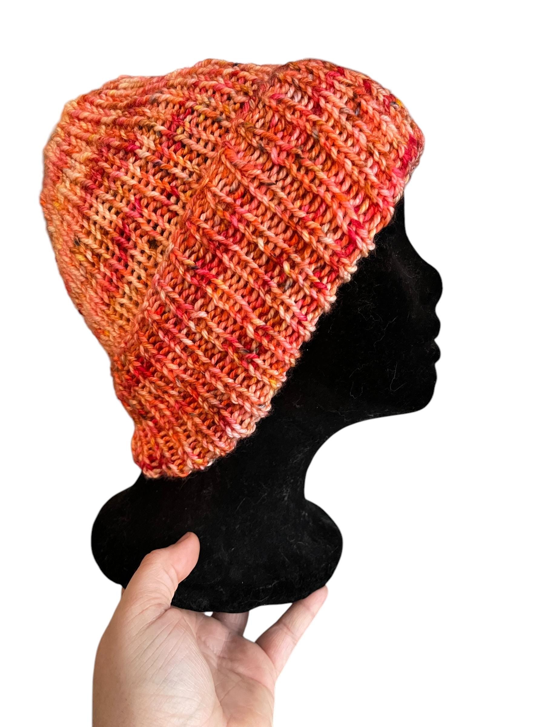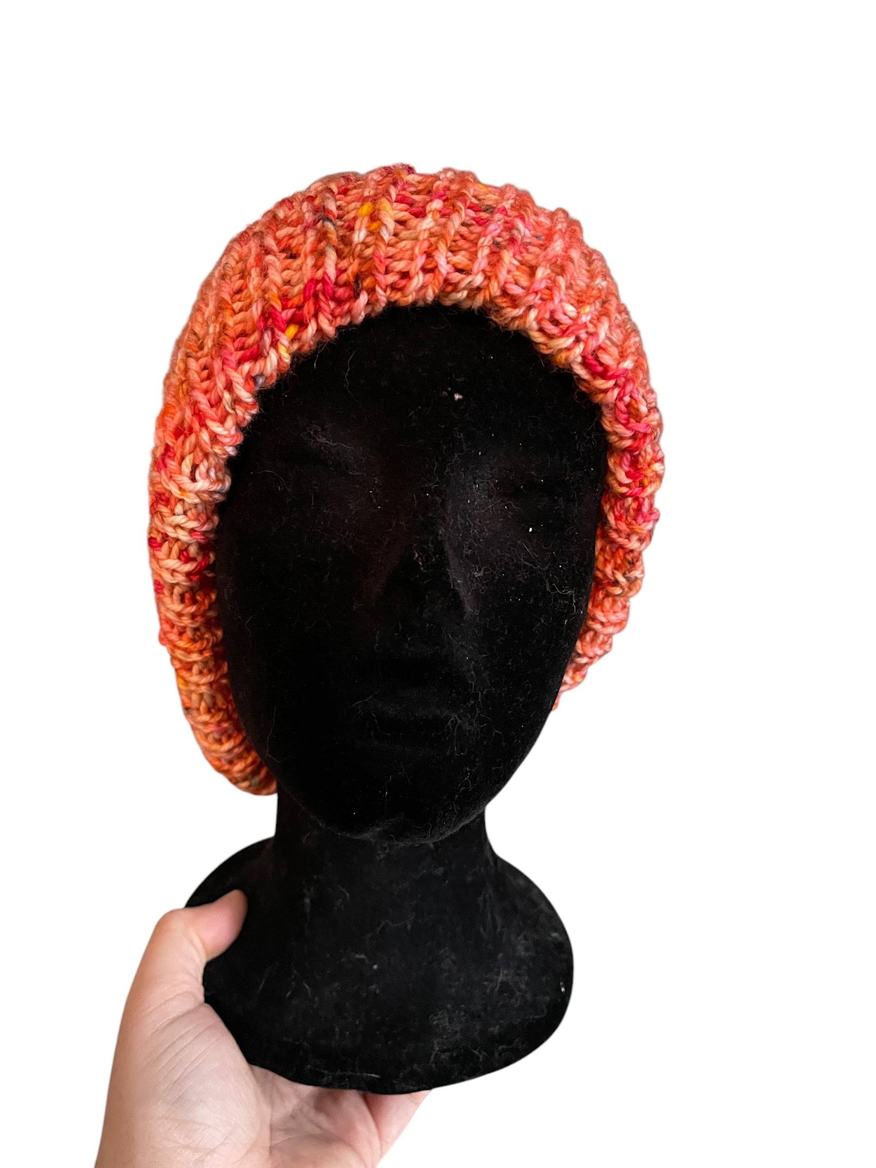 Hand knit beanie made with 100% hand dyed merino wool. Hand wash in cold water, lay flat to dry.