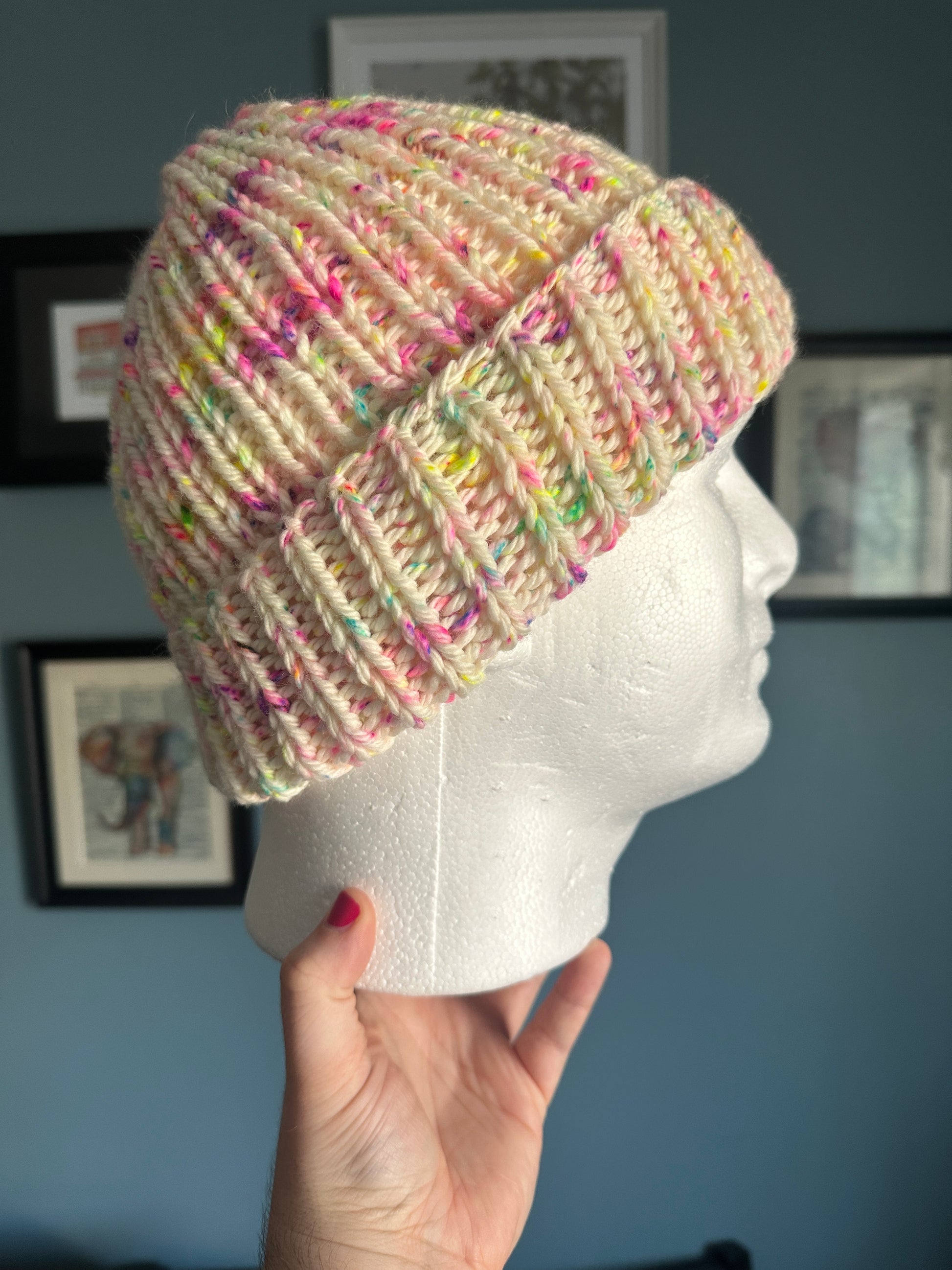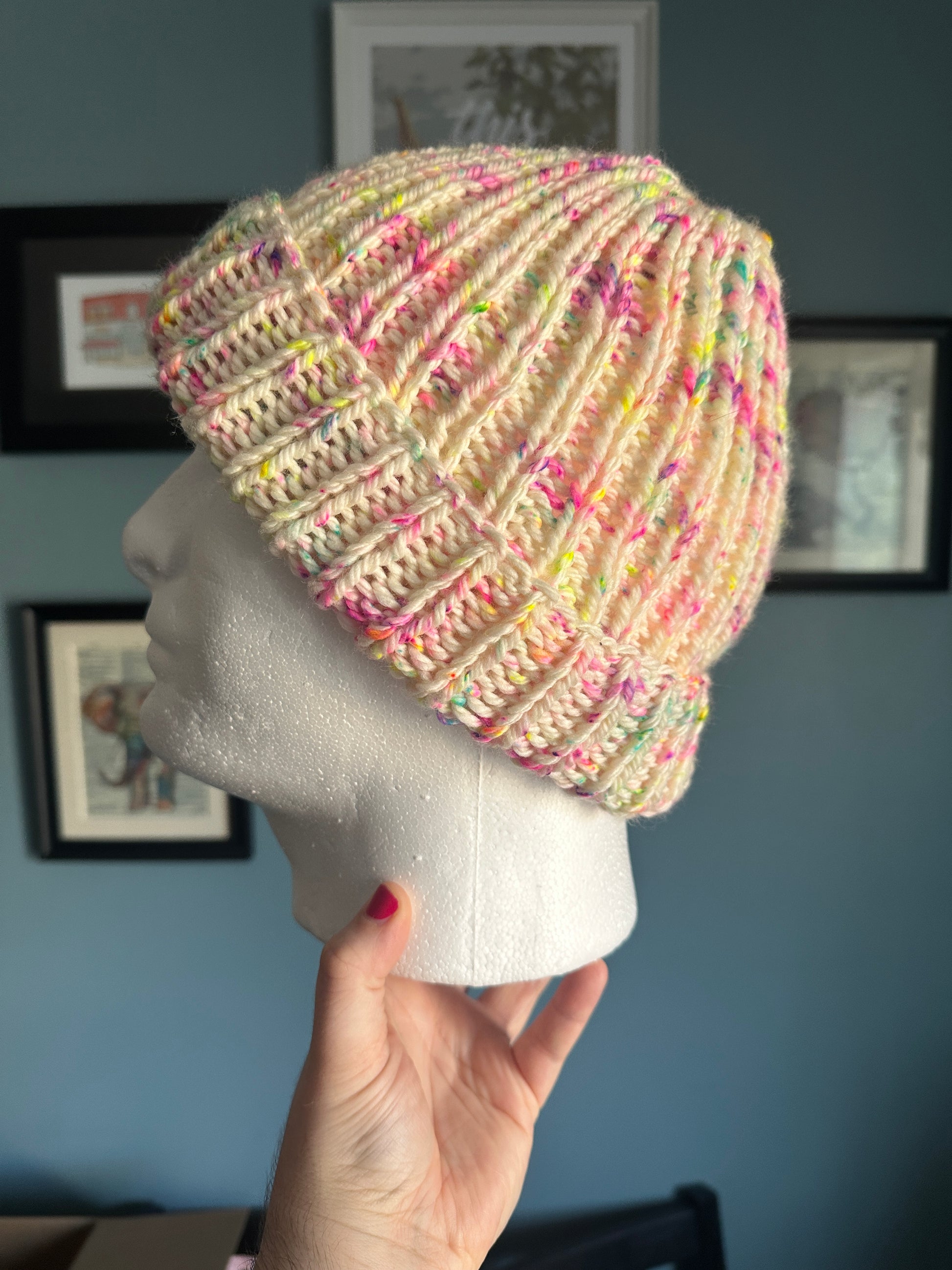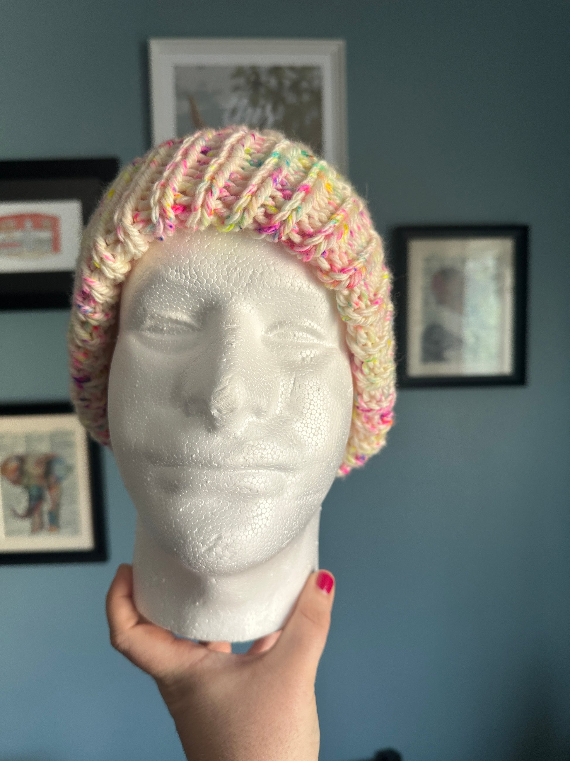 This is made with hand dyed yarn. Avoid over washing as the colours may bleed and become dull over time.